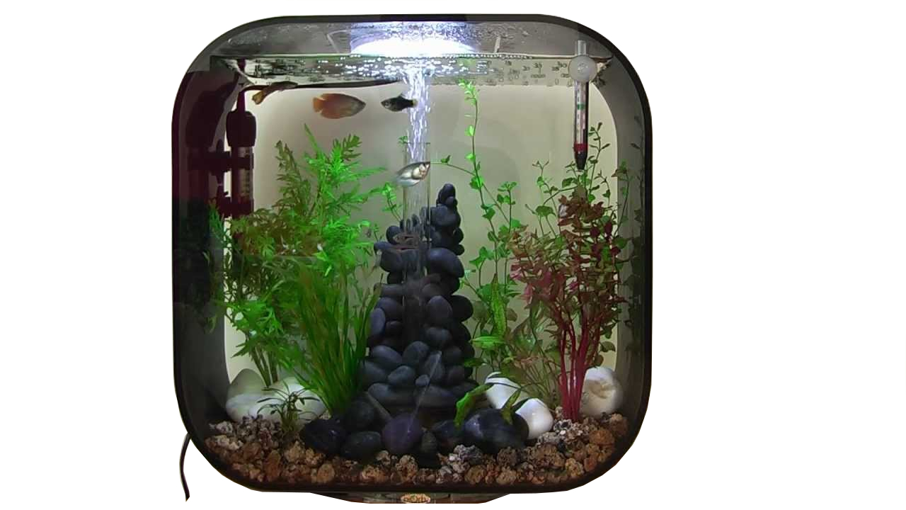 Acest acvariu se livreaza fara decoratiuni. Pozele sunt cu caracter de exemplu pentru variantele de decorare.