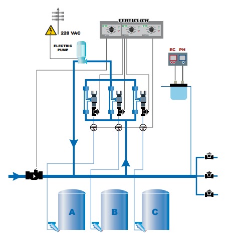 Debitmetrele și monitorul PH și EC permit controlul constant al