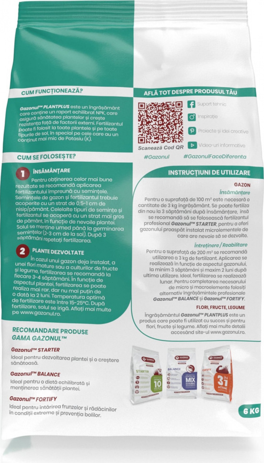 Gazonul™ PLANTPLUS este un fertilizant cu eliberare rapida si solubil in apa. Pentru a avea cele mai bune rezultate, se recomanda alternarea acesui produs cu ingrasamantul Gazonul™ UNIVERSAL, care va contribui la dezvoltarea radacinilor si a foliajului plantelor.