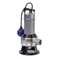 Pompă submersibilă verticală mono-etajată din oţelinoxidabil cu motor submersibil 3-fazicintegrat.Pompa este prevăzută cu suport şi mâner pentrutransport şi este furnizată cu cablu de reţeade 10 m.Rotorul este de tipul Vortex pentru trecerealiberă a particulelor de 50 mm corespunzătorpentru pomparea apei de suprafaţa, apeisubterane, reziduale şi similar.