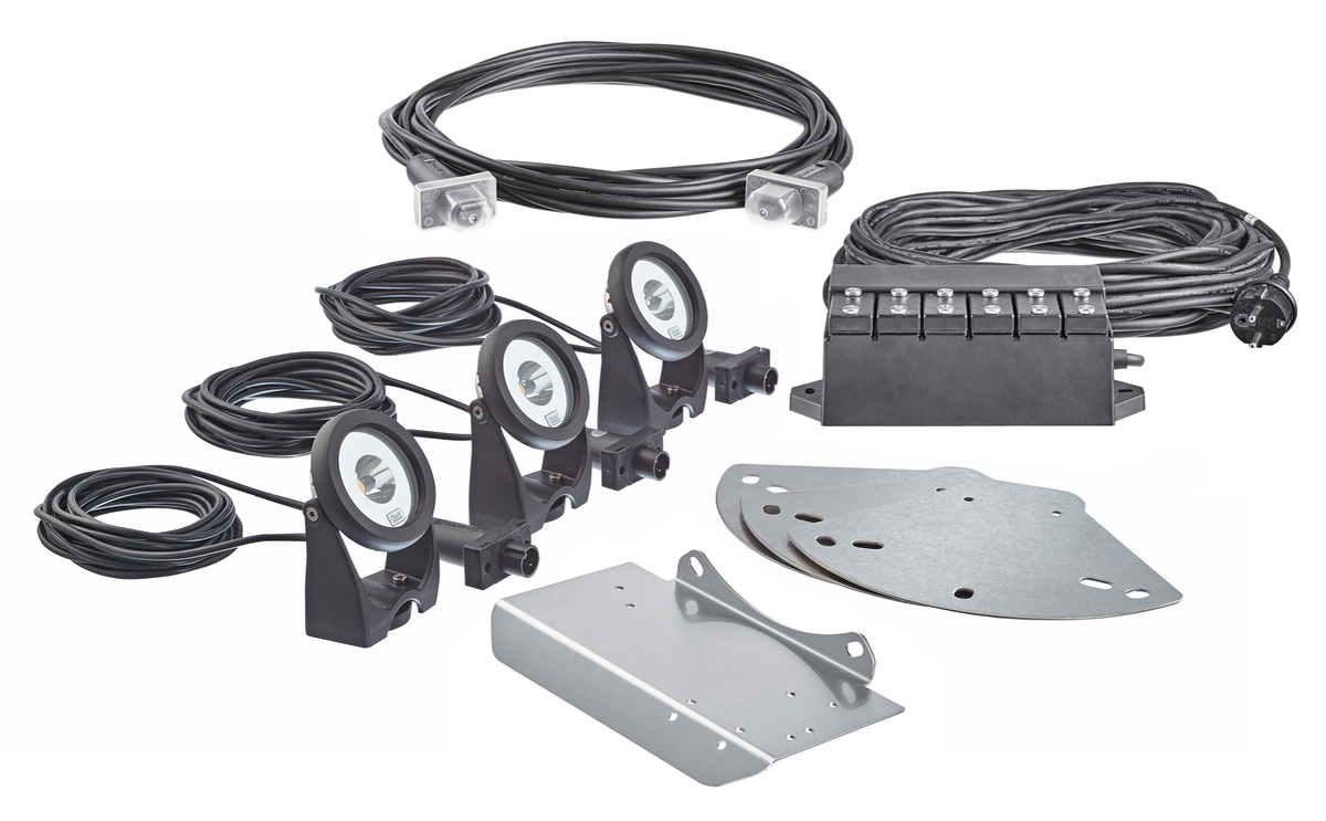 Set format din 3 componente: LunAqua Power LED, cleme de fixare și unitate de alimentare robustă cu 20 de metri de cablu